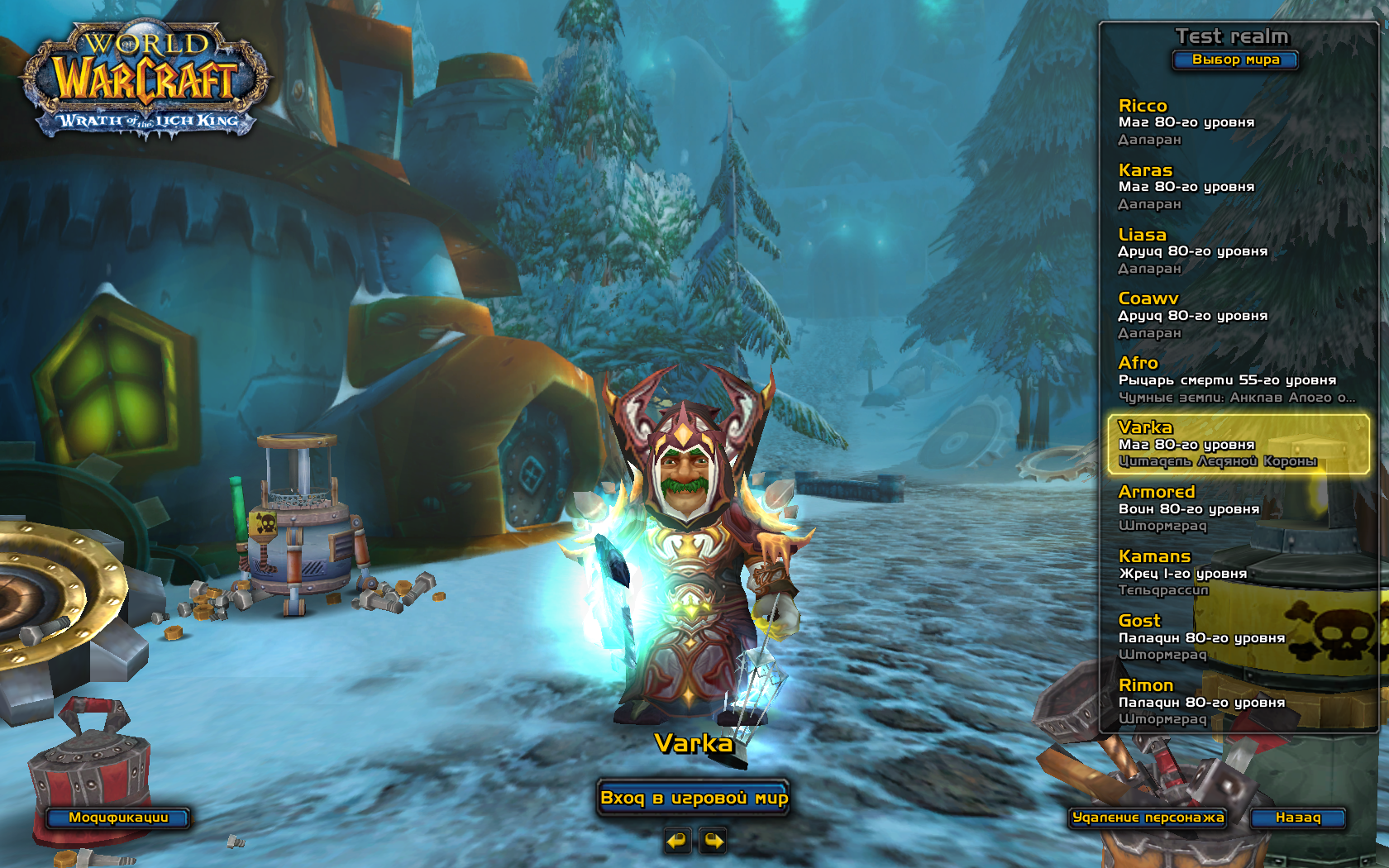 Патч делает кнопки в меню персонажей синими, каноничными для "WoW:Lich King".